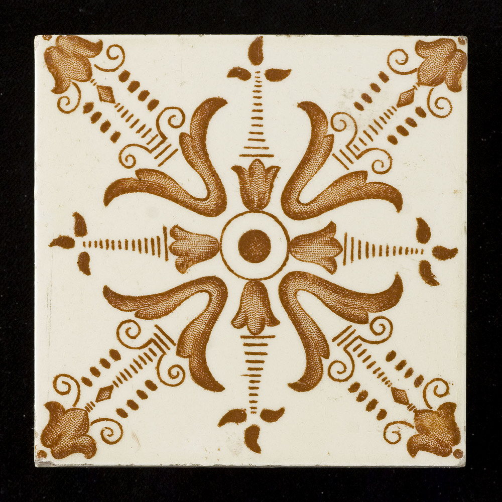 Tegel van tinglazuur, met voorstelling: ornament (de...