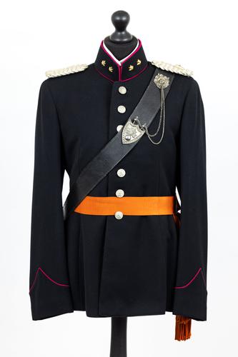 Zwarte uniformjas gelegenheidstenue met lila biezen ...