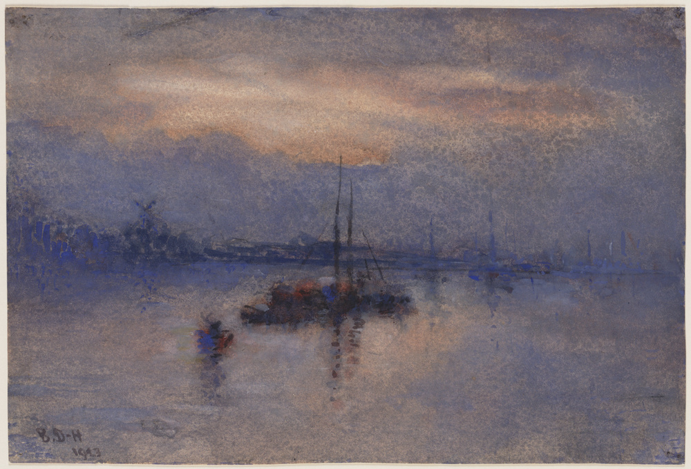 Grote kerk te Dordrecht met op de voorgrond een grac...