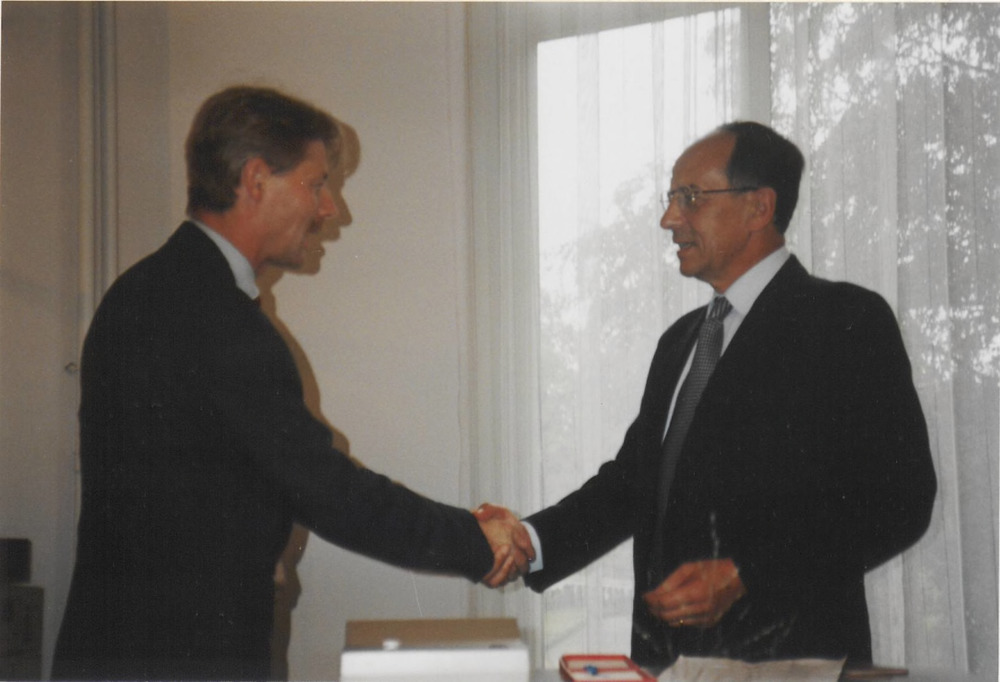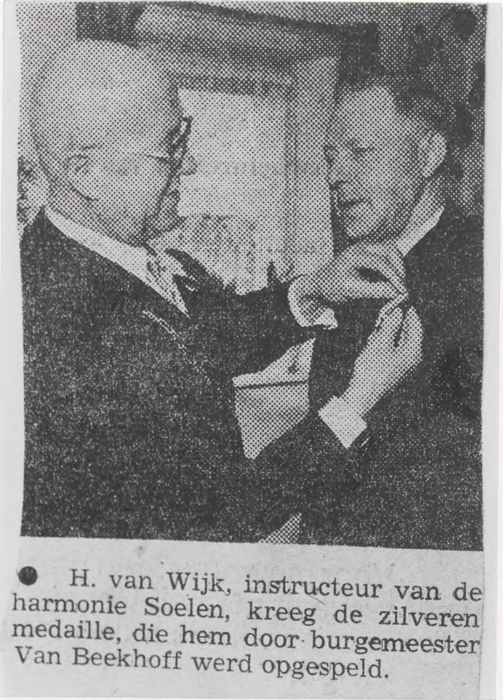 Uitreiking medaille door burgem. Beekhoff aan H.v. Wijk