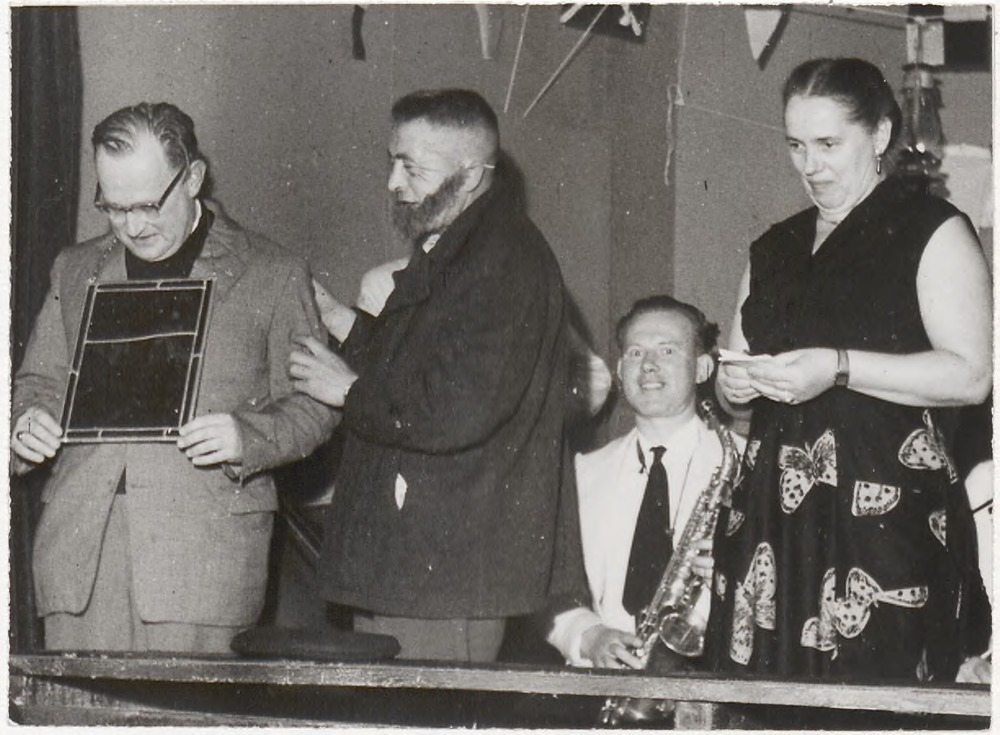V.l.n.r.: de heren Henk van Wijk, W. Nieuwenhuizen, ...