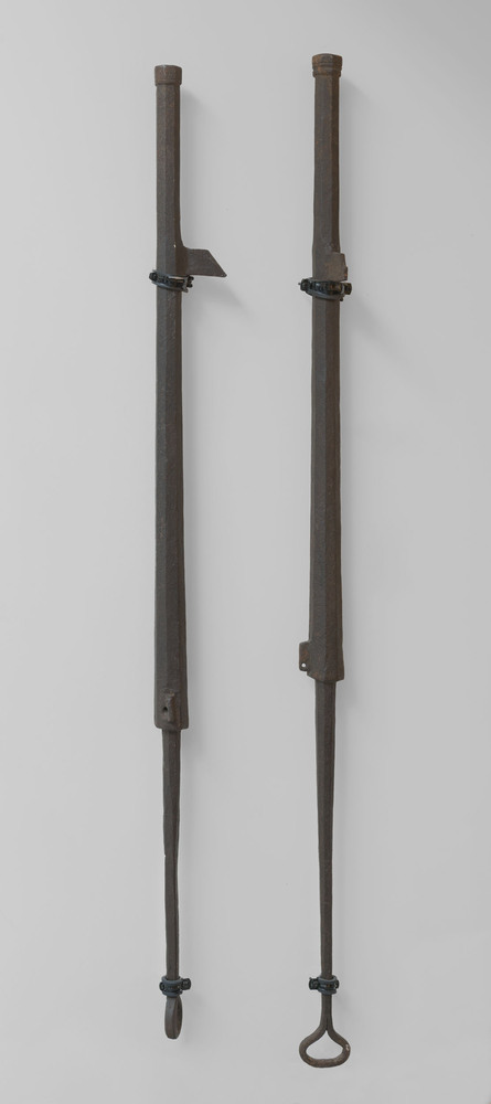 Zeeflepel van ijzer aan lange steel met gaatjes, geb...