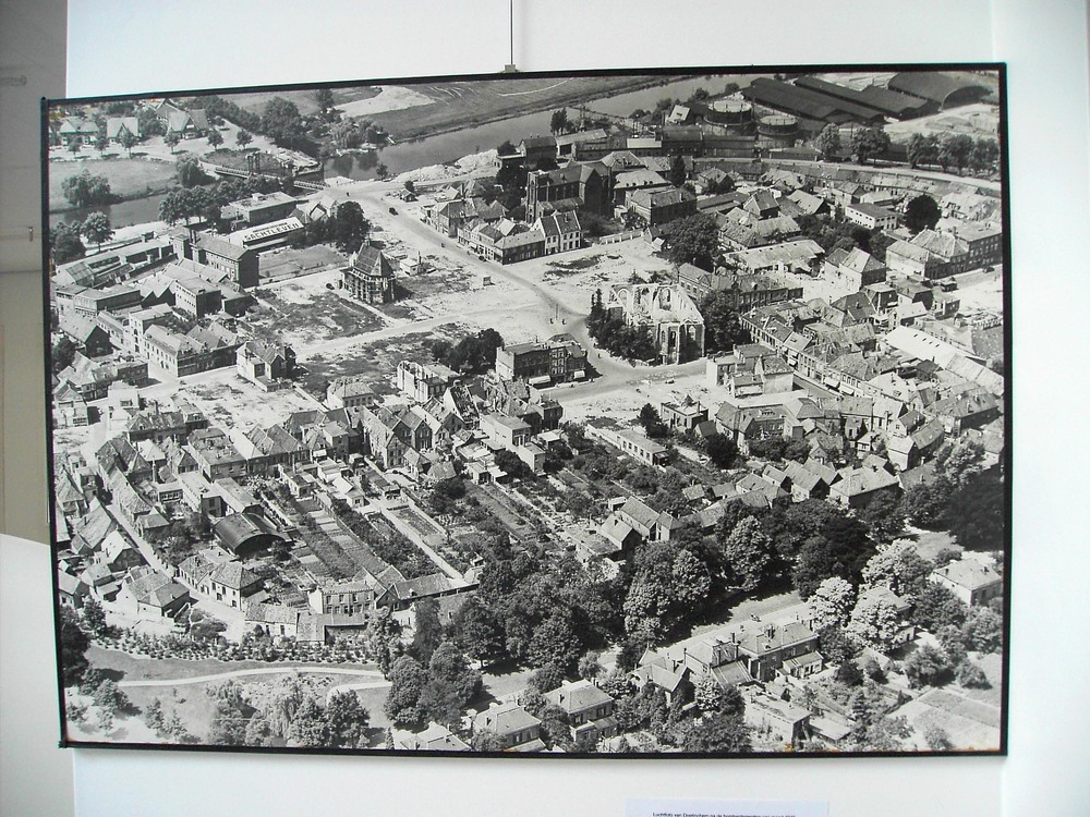 Luchtfoto, waarop afgebeeld het verwoeste centrum va...