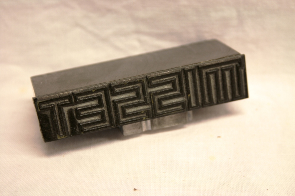 Misset; naamstempel van lood.