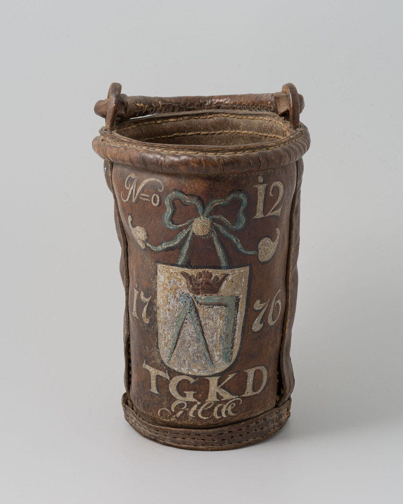 Brandemmer met hengsel, beide van leer