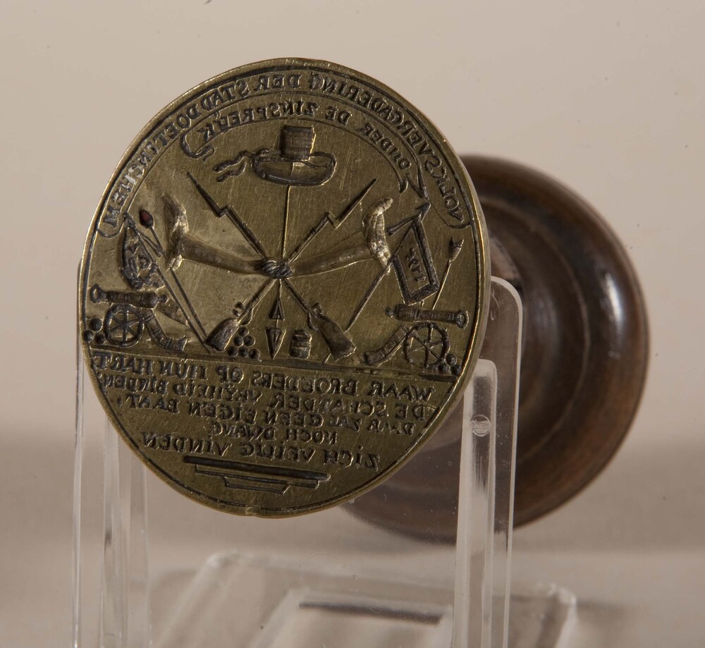 Zegel van metaal, reproductie, voorstellend het stad...