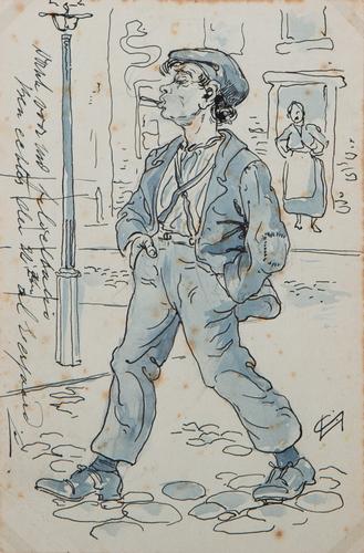 Briefkaart mijmerende man