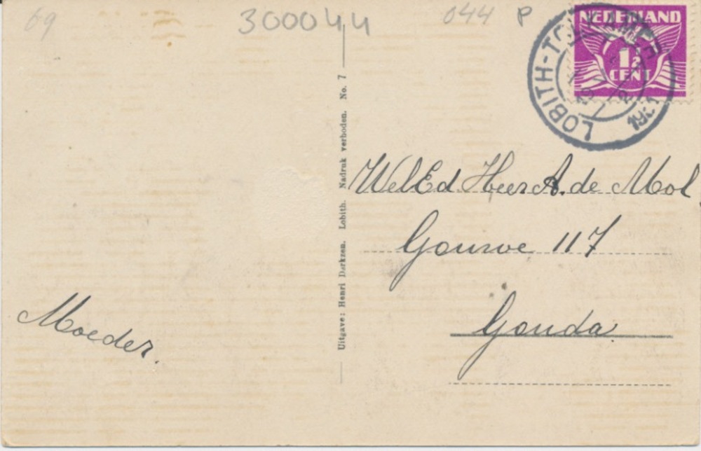 Ansichtkaart café-restaurant L. van den Broek aan de...