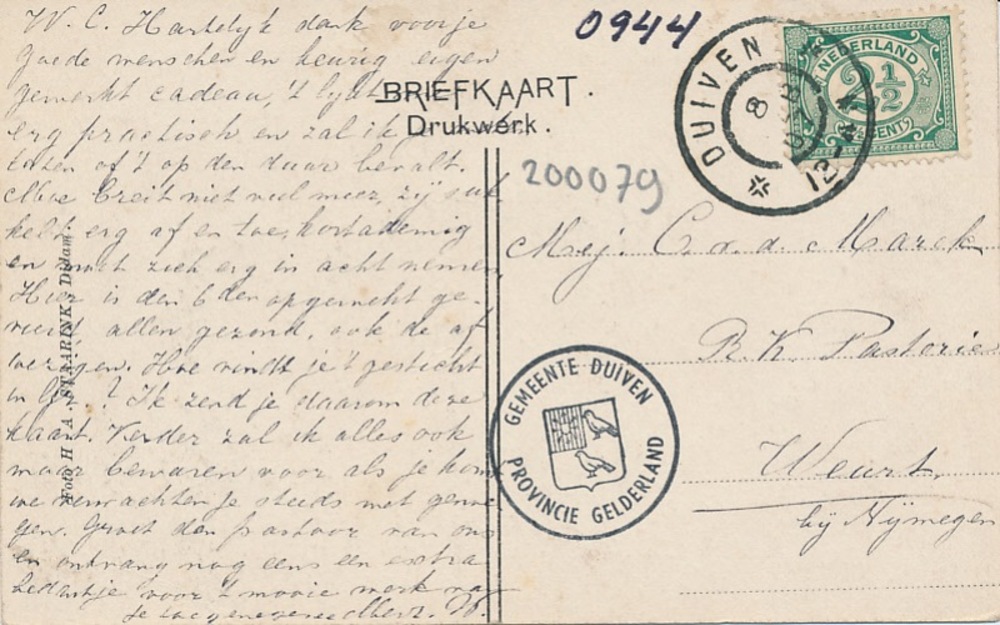 Ansichtkaart Remigiuskerk gezicht op Duiven