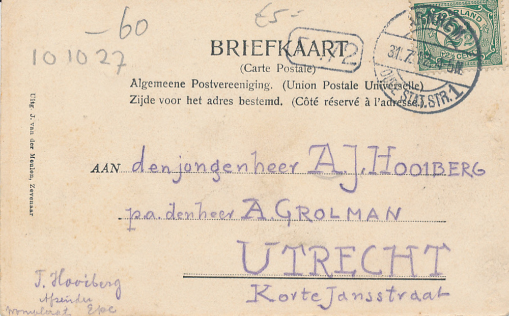 Ansichtkaart café H.W. van Uum te Zevenaar