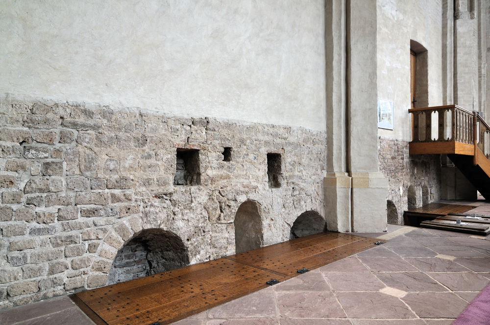 Middeleeuwse muur, deel van koor en crypte