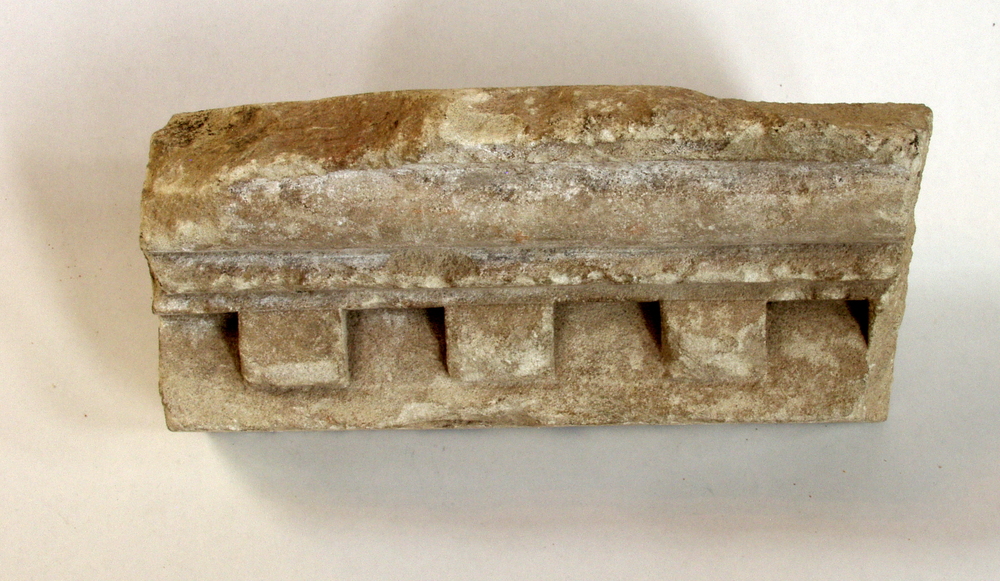 Lijst (fragment) van kalksteen met drie tanden,
