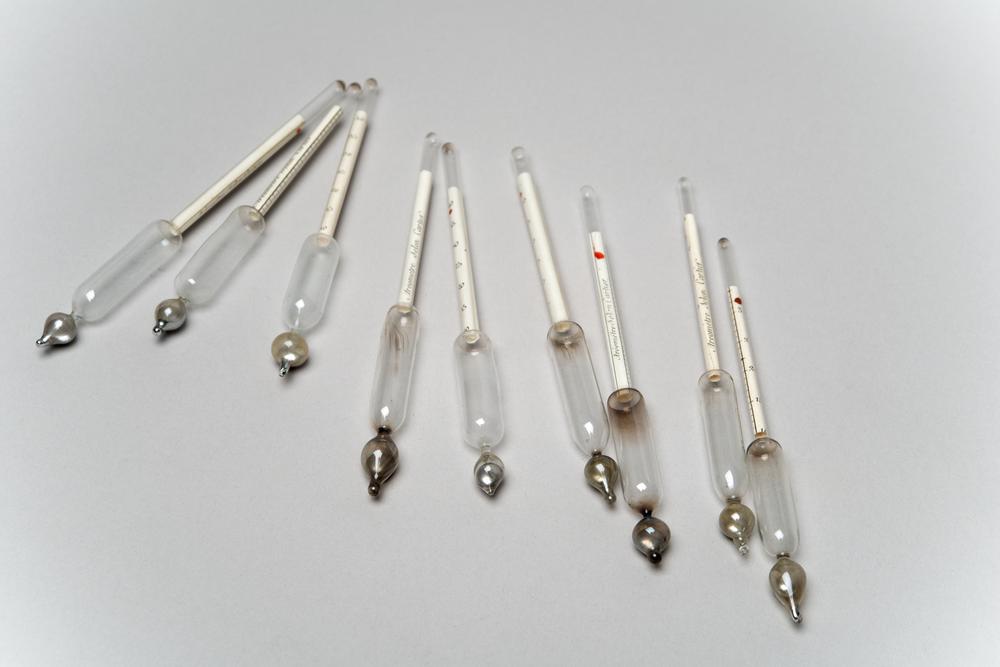 Etui met diverse areometers