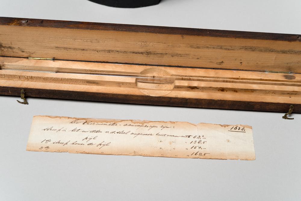 Flesjeswaterpas in kist