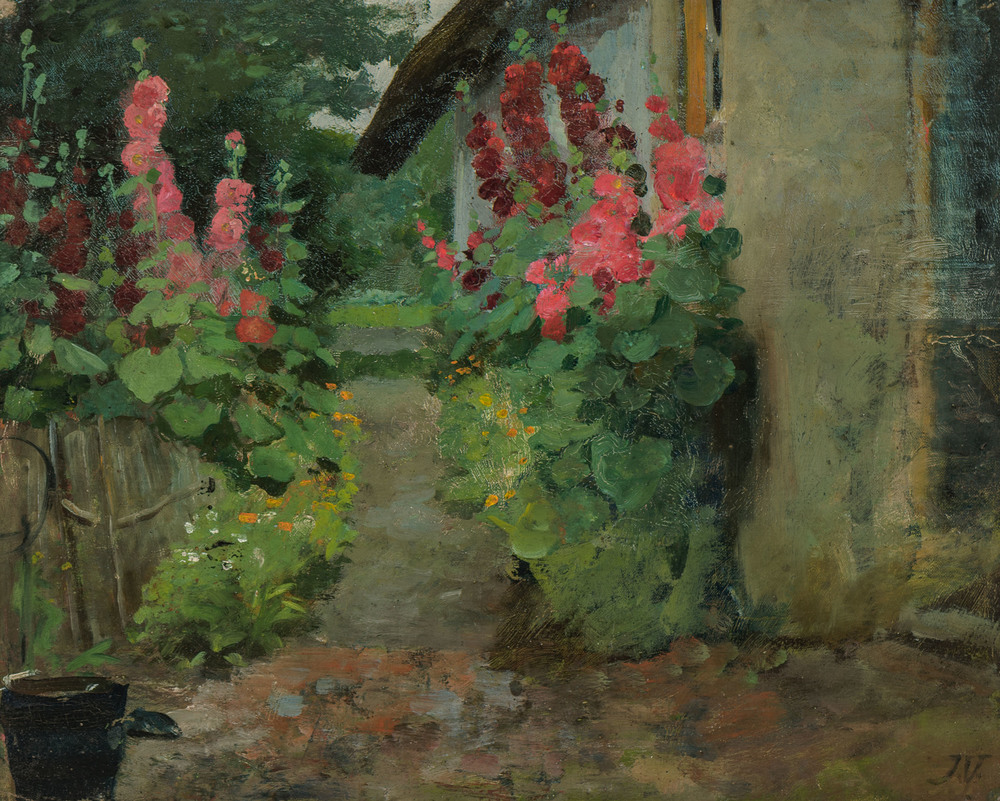 Stokrozen in tuin