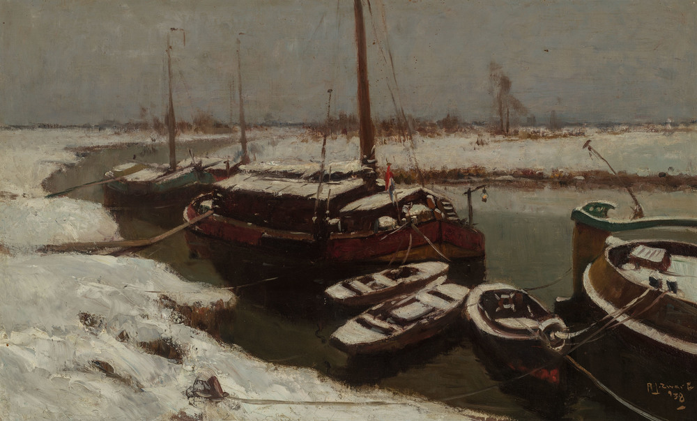 Turfschepen in de sneeuw