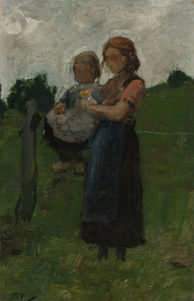 Boerenmeisje met kind op de arm