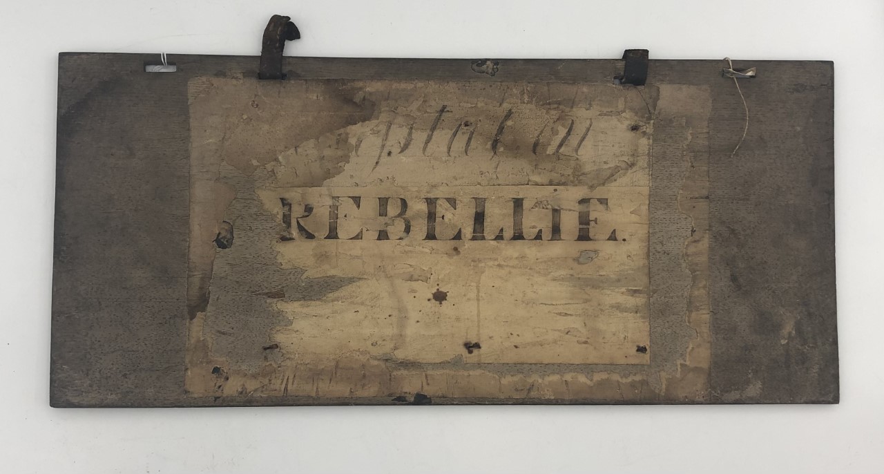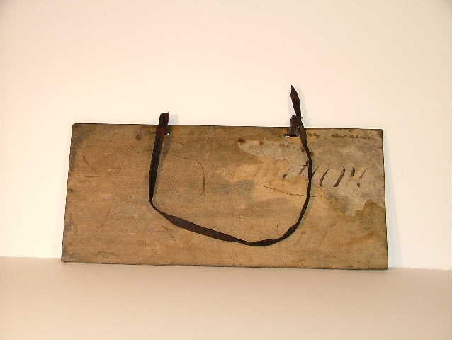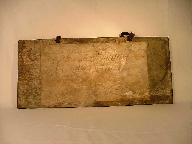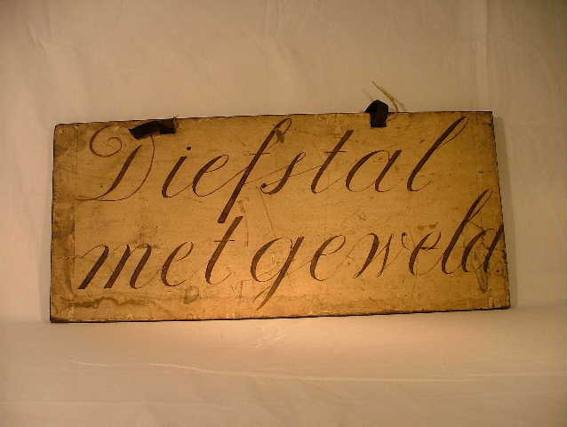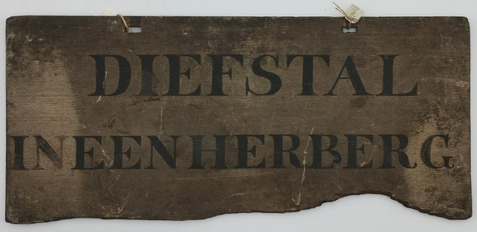 Schandbord met aan weerszijden tekst.