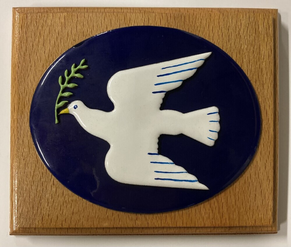 wandbord met vredesduifmotief in keramiek, bevestigd...