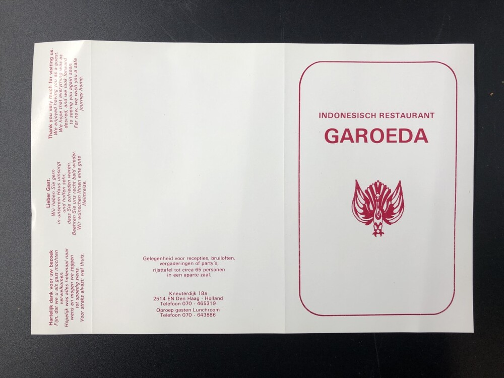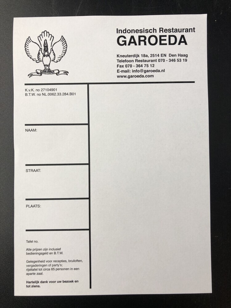 Voorbedrukt papier voor rekening restaurant Garoeda