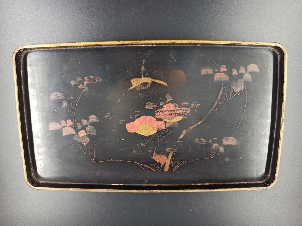 Dienblad met Oosterse schildering (bloemen en takken...