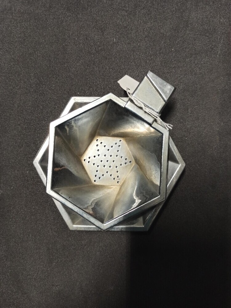 Zeskantig theezeefje met bijbehorend schoteltje