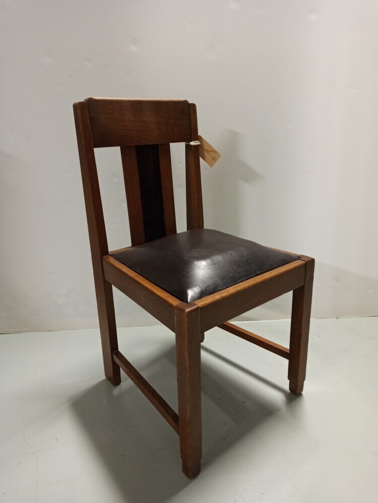 Houten stoel met zitting van donker imitatie leer