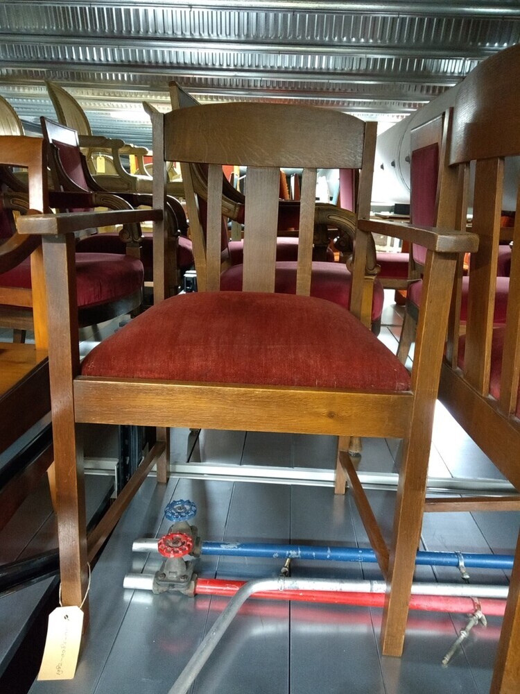 Houten stoel met armleuningen en zitting van rood fl...
