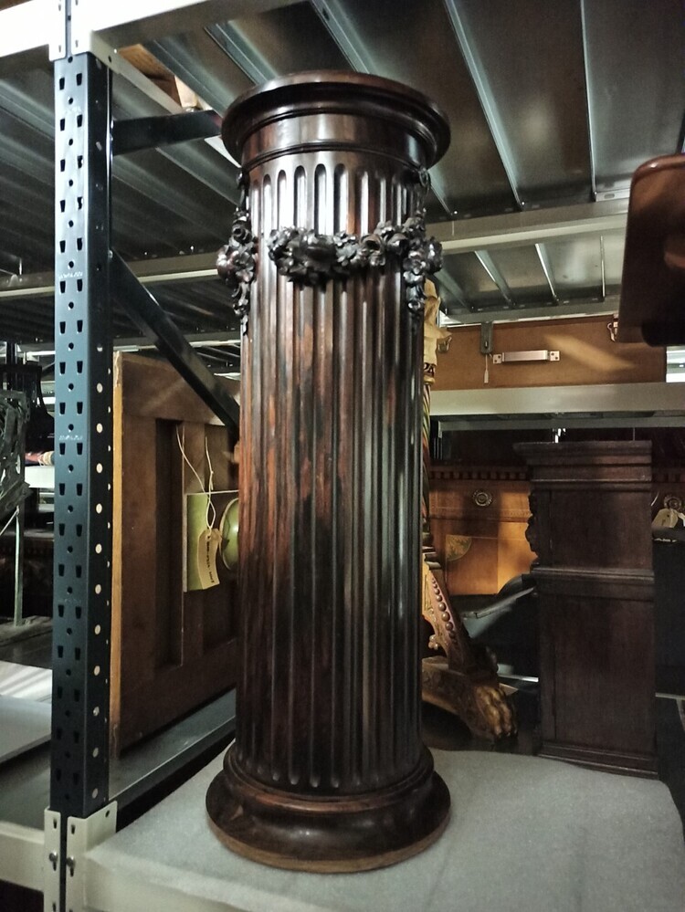 Sokkel met bladeren en bloemen ter decoratie