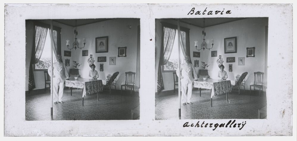 Man en vrouw in een kamer in Batavia (Jakarta) in vo...