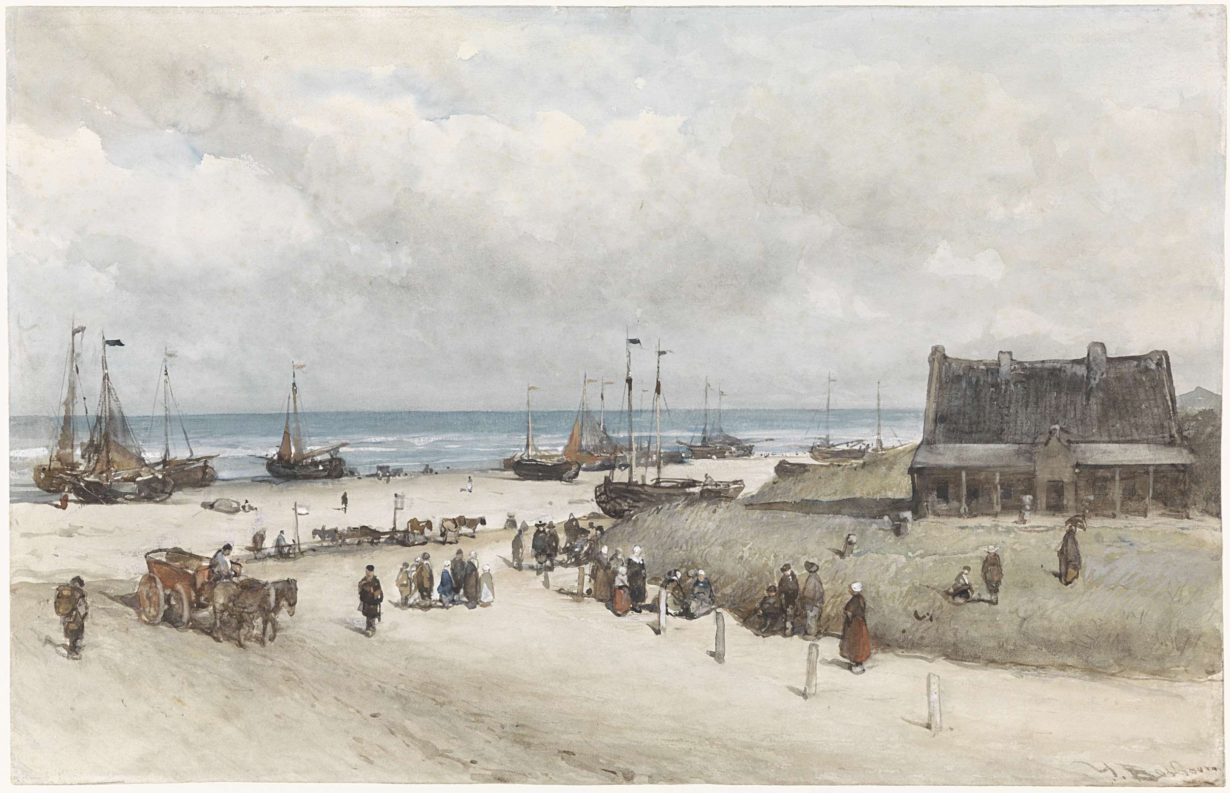 Vissersvrouw met haar dochtertje als 'bruidje' steek...