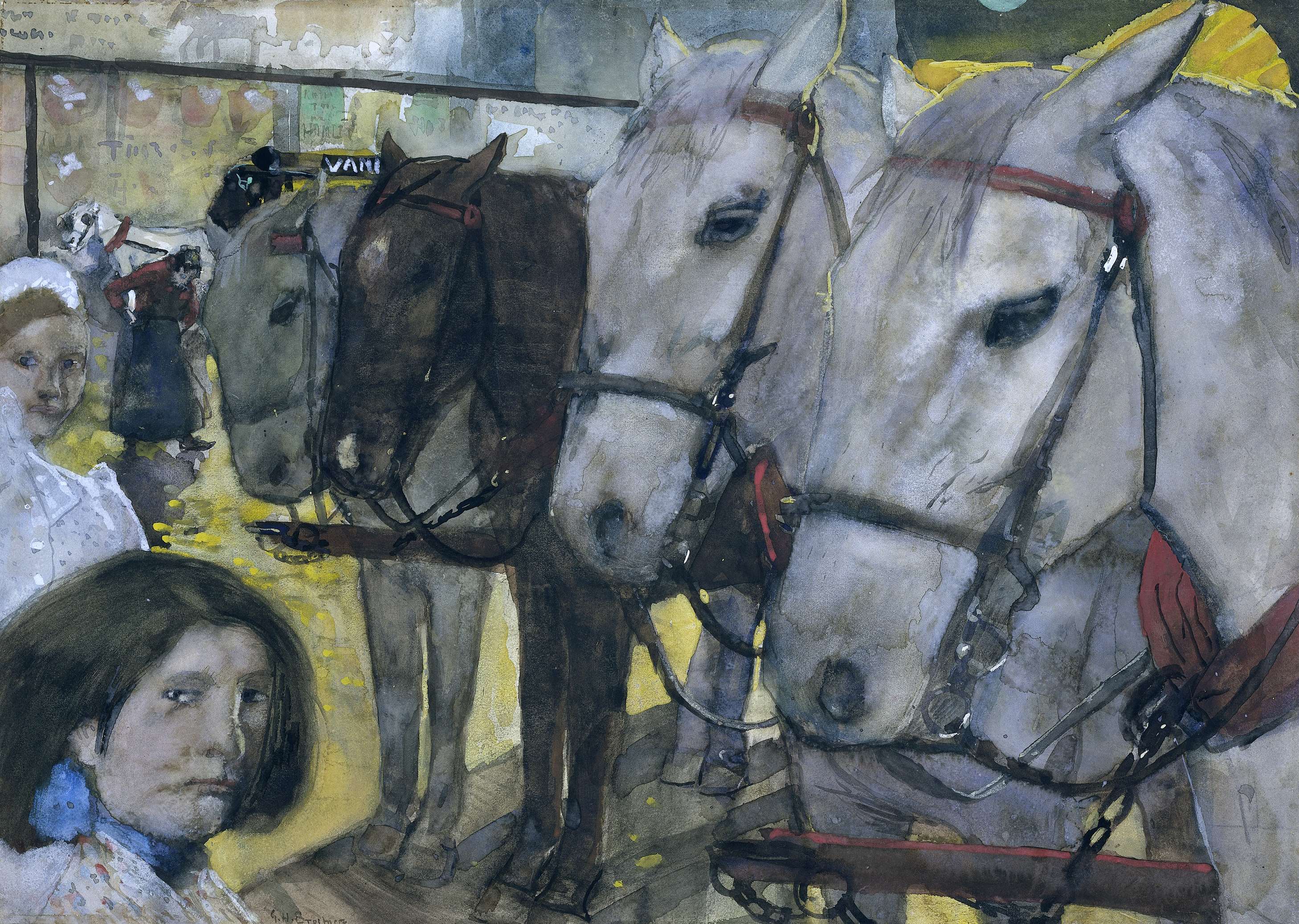 Dienstmeisje met kinderwagen op de Keizersgracht