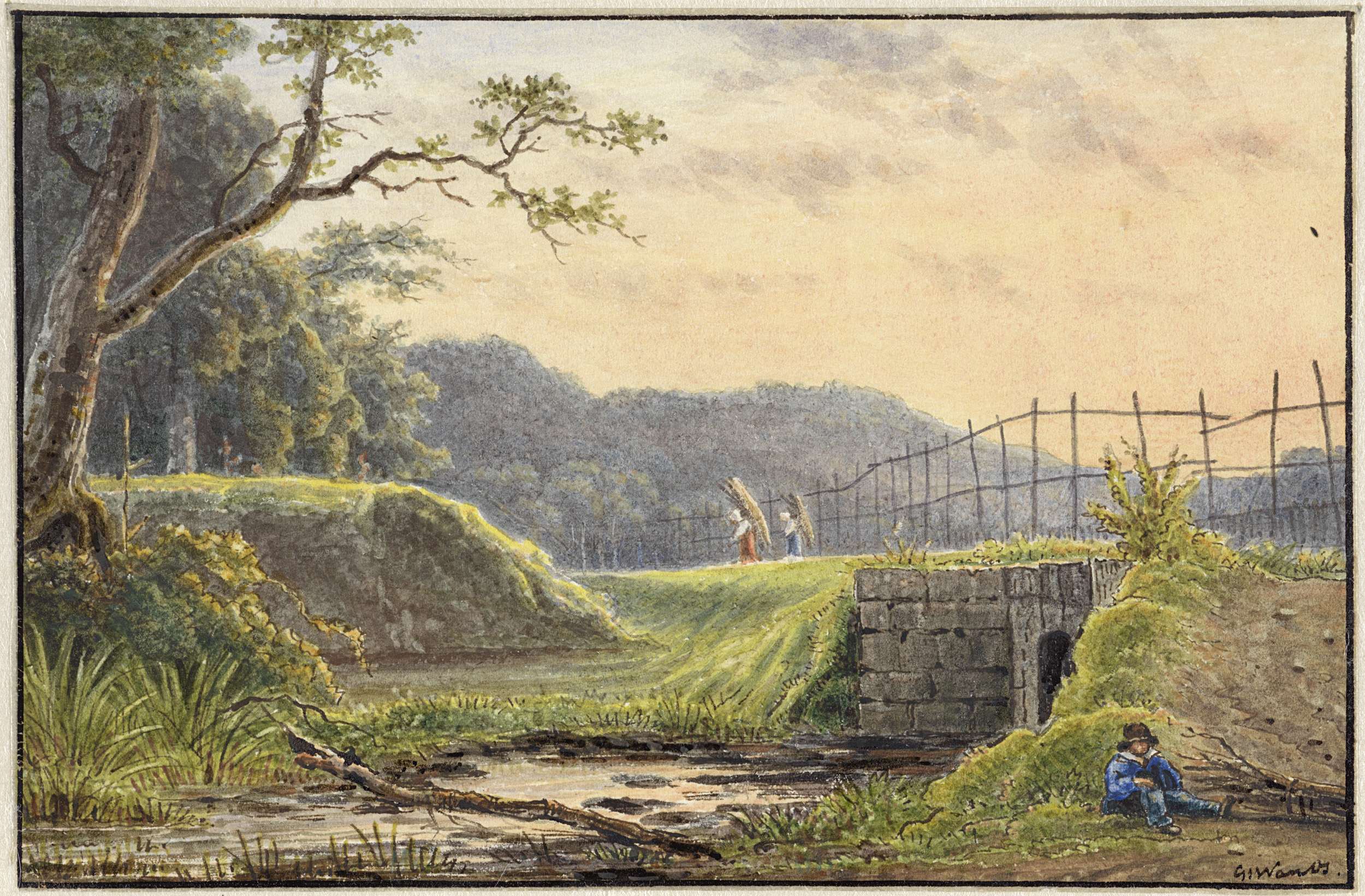 Landschap met rechts twee hengelaars