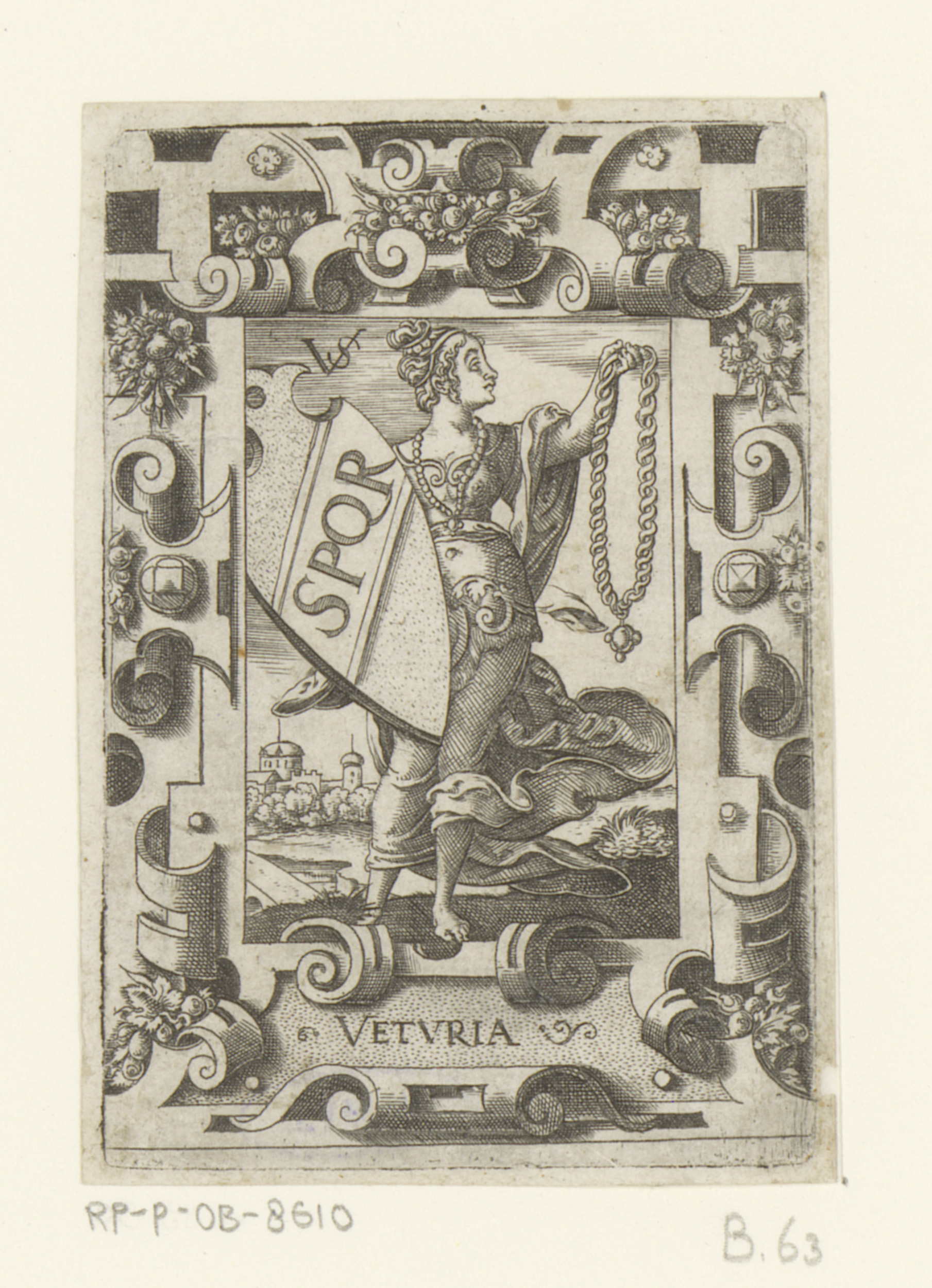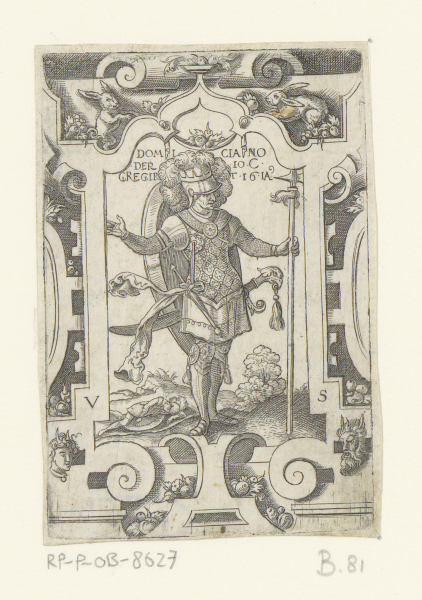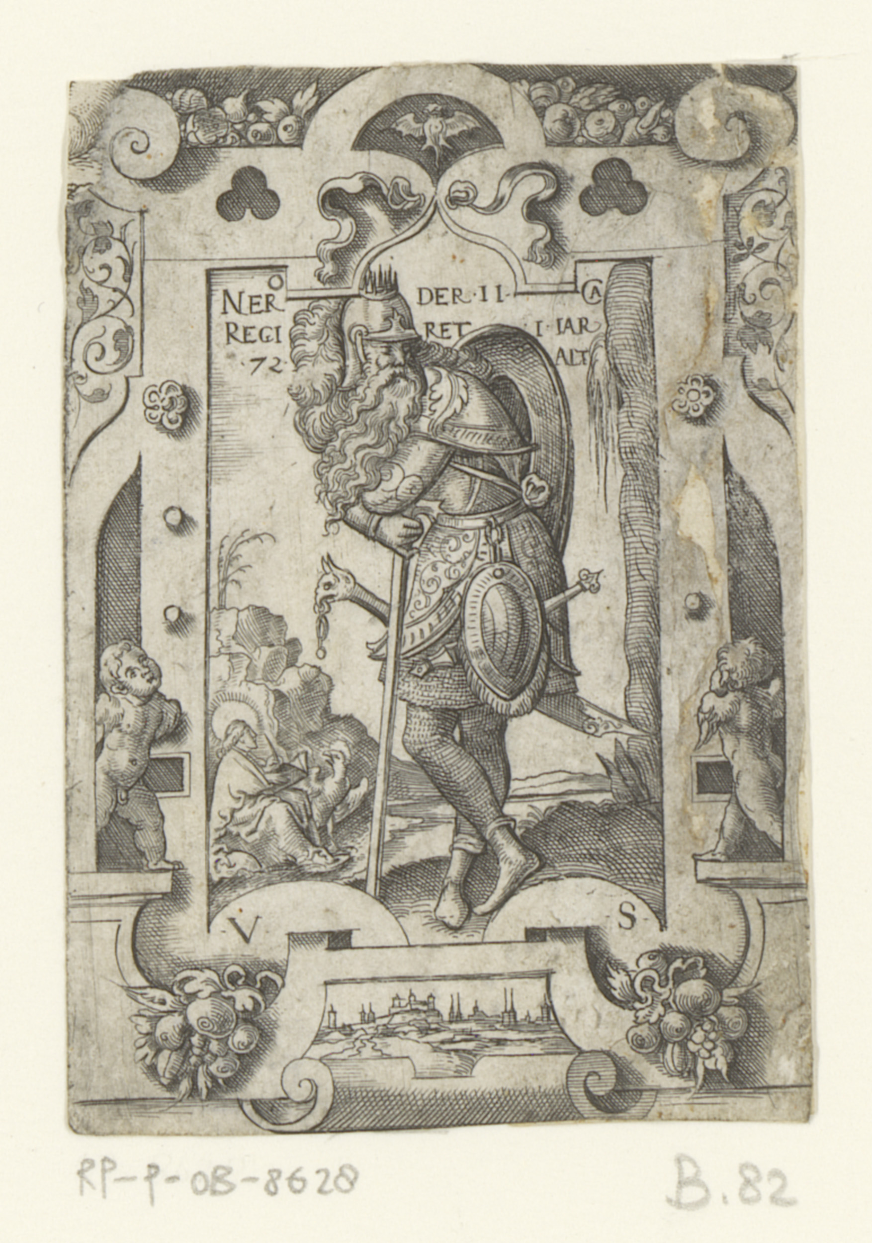 Judas de Makkabeër met wapenschild in rolwerk omlijs...