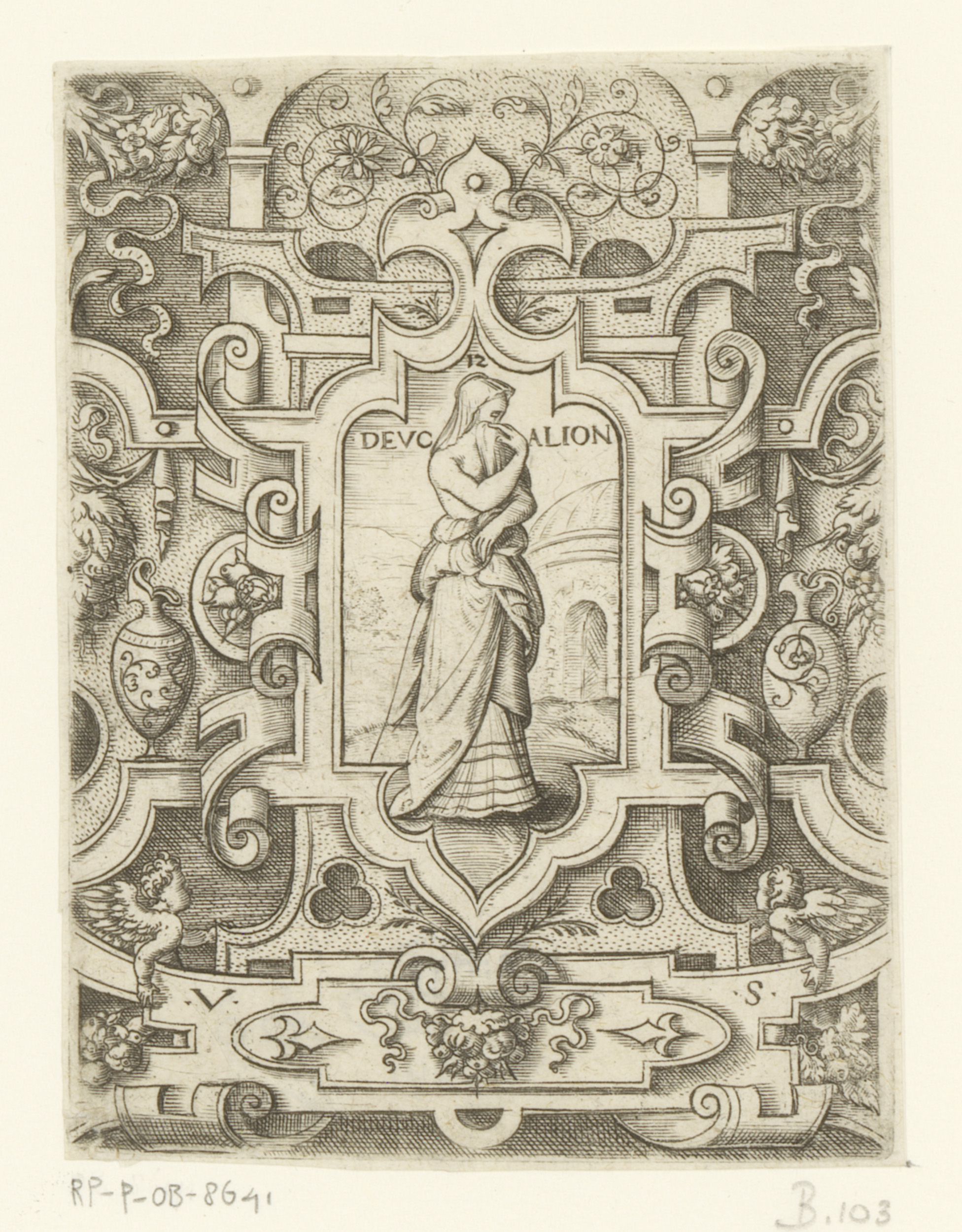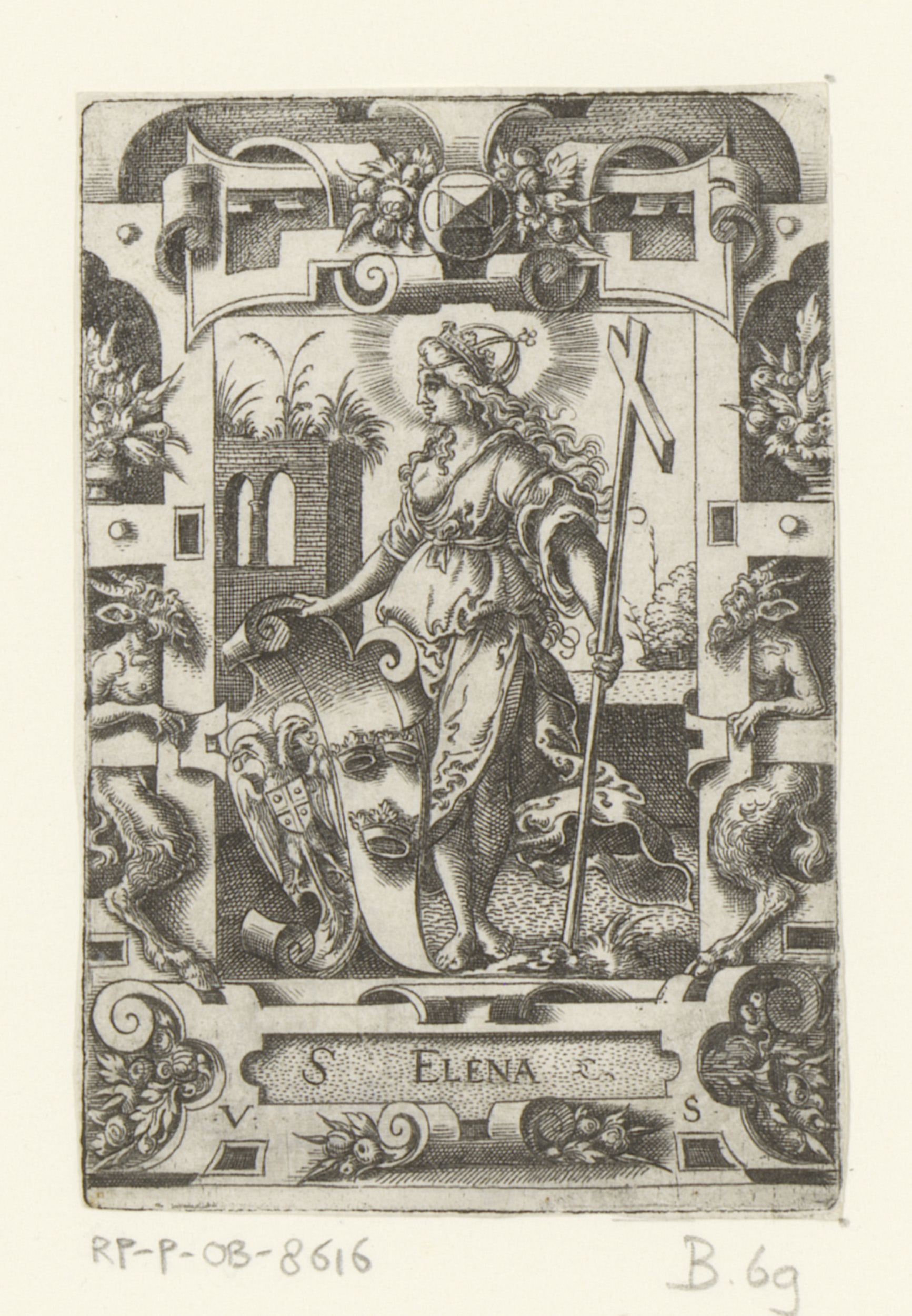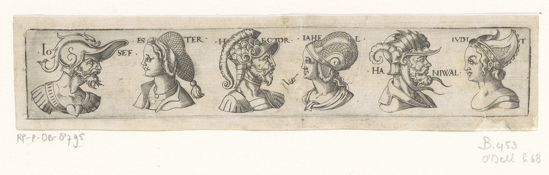 Judas de Makkabeër met wapenschild in rolwerk omlijs...