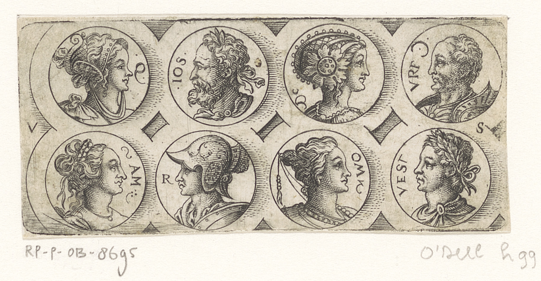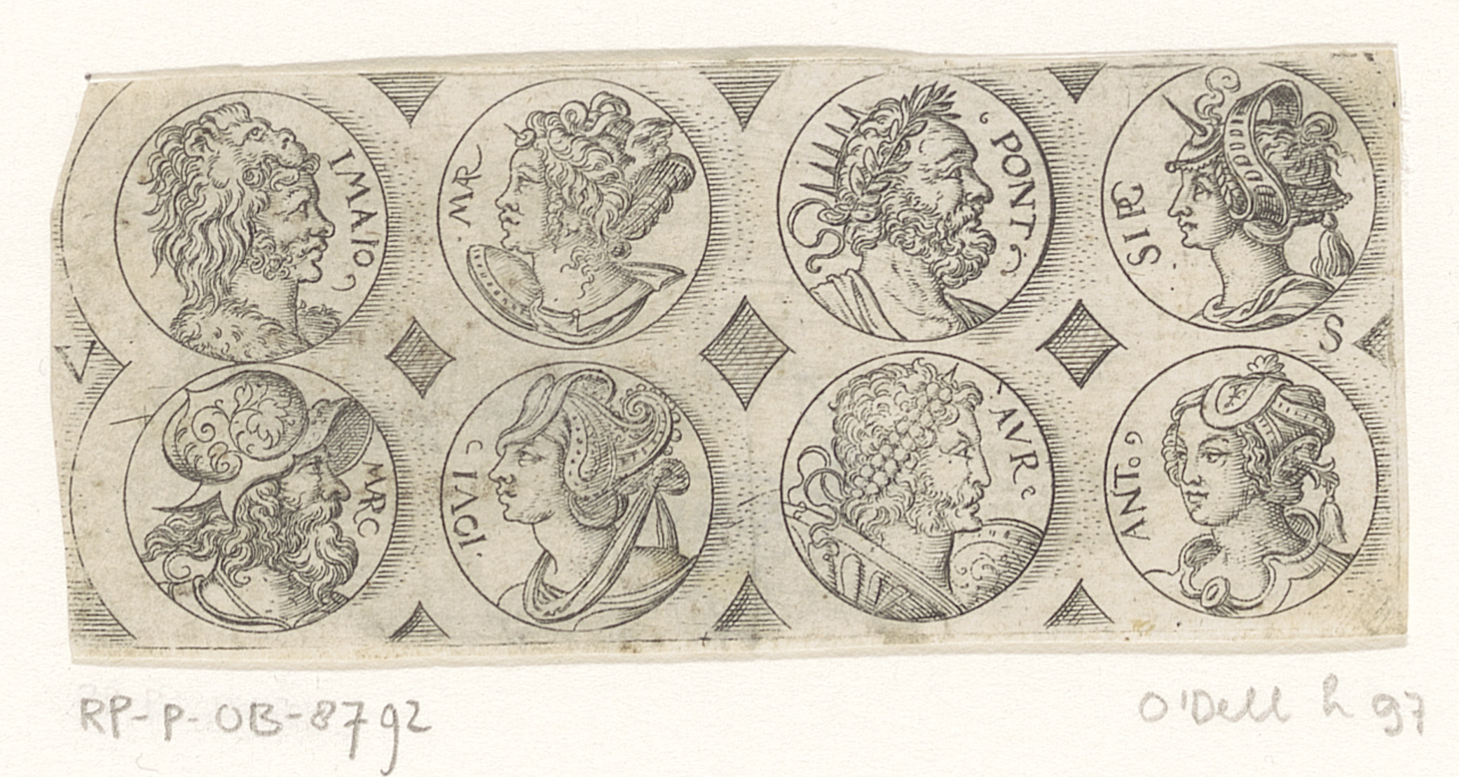 Fries met tien mannelijke en vrouwelijke bustes bove...